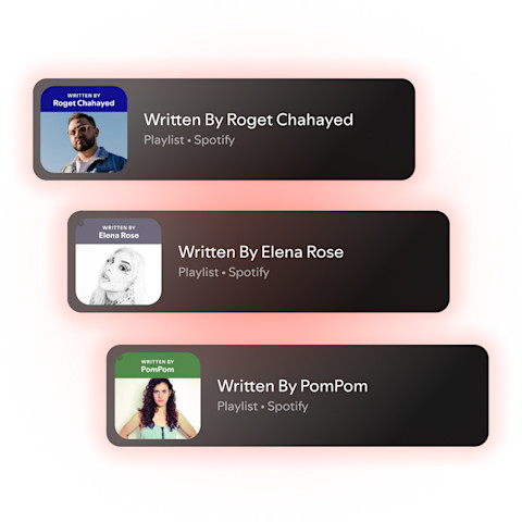 Written By playlists are fan-facing versions of Songwriter Pages. They increase exposure to new audiences, deepen relationships with current fans, and maximize discoverability on Spotify by allowing listeners to hear your career-spanning works.